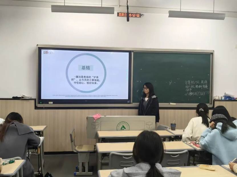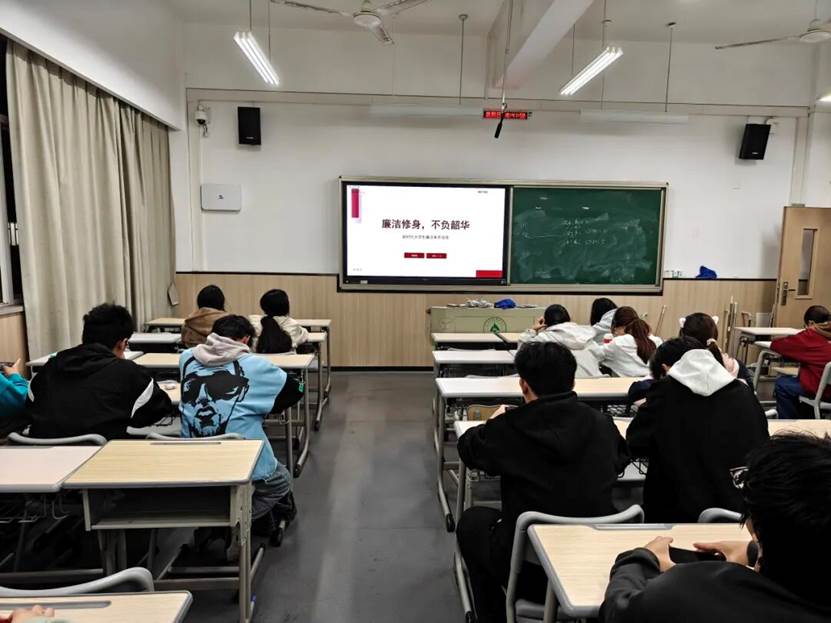 各班级充分利用晚自习时光,打造沉浸式廉洁教育课堂:既有直击心灵的廉洁视频观看,又有引人深思的廉洁故事汇分享;既组织围绕 “AI 时代如何坚守数据诚信”“物联网技术应用中的廉洁底线” 等专业相关议题的辩论讨论,又集中展示融入代码元素、智能场景的原创廉洁作品;既鼓励学生分享班级廉洁建设微举措,更以趣味十足的廉洁知识竞赛检验学习成效。活动紧扣 “崇廉、尚廉、守廉” 核心要义,将专业精神与廉洁品格培育深度融合,形式创新迭出、亮点精彩纷呈,让廉洁教育从 “被动接受” 变为 “主动参与”,真正实现廉洁之风浸润心灵、修身之道融入成长,引导新生以清廉底色赋能专业学习,以守正初心护航人生征程。