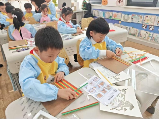 活动伊始,伴随着“马年”的亲切话题,轻松活泼的童趣问答迅速点燃了现场。“马到成功!”“一马当先!”“车水马龙!”……孩子们争先恐后地举起小手,清脆的应答声里满载着对新春的期盼。紧接着,志愿者借助图文并茂的PPT与短片,将竹编画的源流、拓印技艺的故事娓娓道来。小朋友们仰着小脸,听得入神,非遗的种子已在悄然间播种在心田。