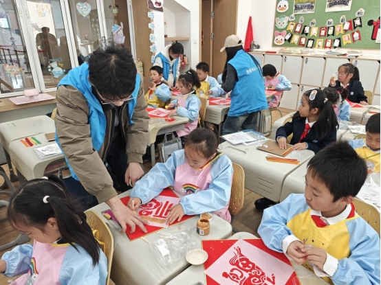 墨印拓福,携手纳新。志愿者们精心准备了福字、生肖马等吉祥图案的拓印模板,孩子们在志愿者的指导下,小心翼翼地涂抹、拓印,当鲜艳的金色“福”字与昂扬的骏马图案跃然纸上,浓浓的年味瞬间弥漫整个教室。“我要把这个福字带回家,送给爸爸妈妈!”孩子们捧着亲手制作的福卡,笑容格外灿烂。