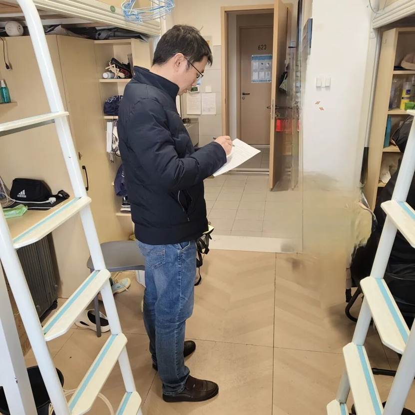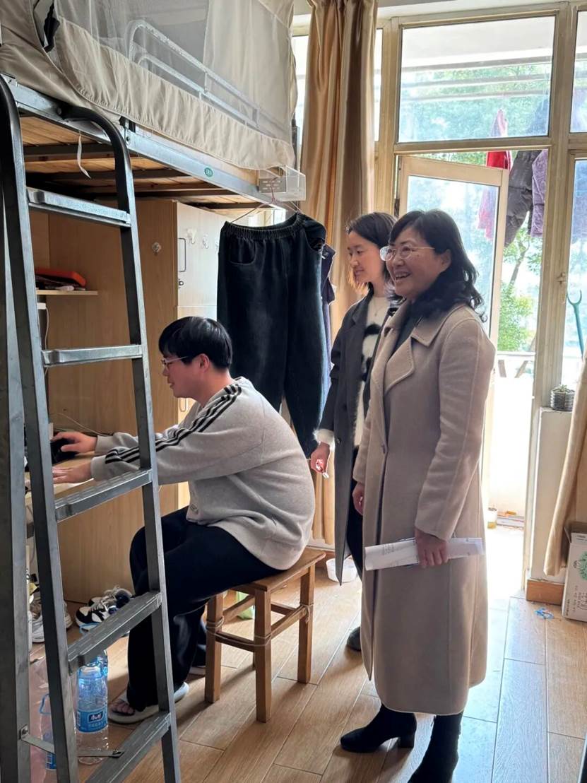 走访过程中,老师们走进一间间宿舍,与同学们亲切交流、细致问候。大家详细询问同学们的返校适应情况、新学期学习安排,耐心倾听大家在生活、学习中遇到的困惑与需求,尤其对即将进入实习阶段的学生,重点了解实习准备、职业规划等情况,给予针对性指导与鼓励。